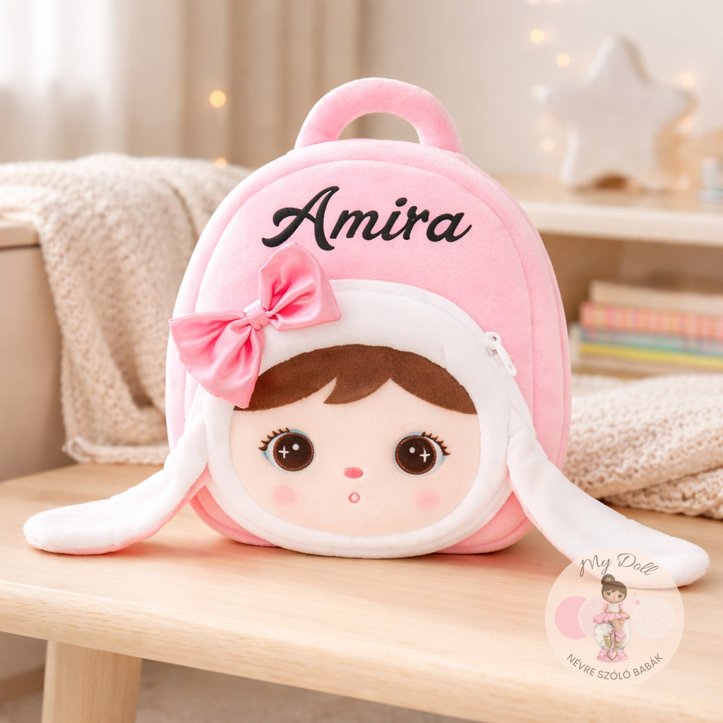 Ne hagyd ki a lehetőséget, hogy a gyermeked stílusosan és jókedvűen induljon útnak a MyDoll névre szóló masnis nyuszi hátizsák segítségével! Ez a különleges és egyedi termék nemcsak egy praktikus tároló, hanem egyedülálló kiegészítő is.