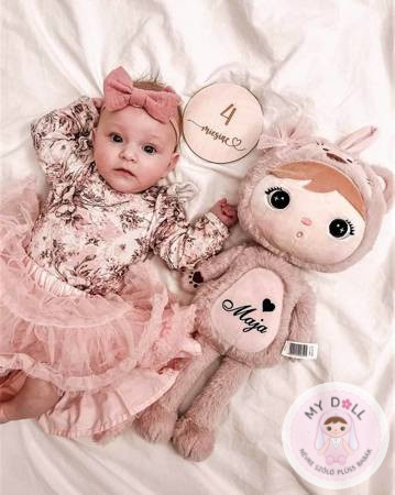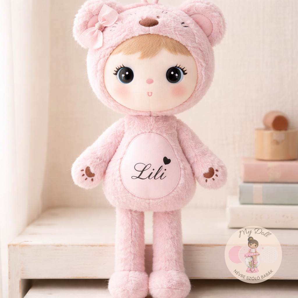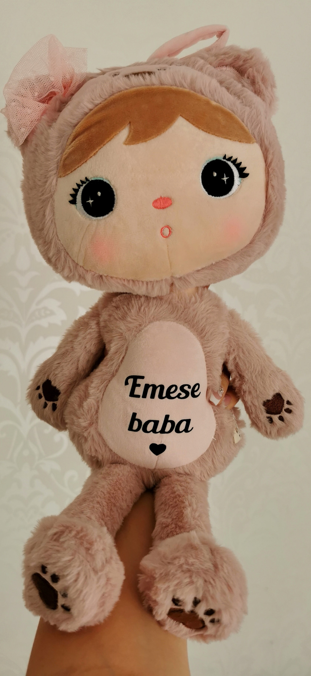 Ne habozz tovább, válaszd a MyDoll névre szóló maci babát masnival gyermekednek! Ez a különleges és személyre szabott ajándék garantáltan mosolyt csal az arcára, és egy életre szóló emlék lesz számára. Ha kisfiú részére szeretnél maci babát vásárolni, akkor a névre szóló babák között bézs színű változatban is megtalálod, masni nélkül.