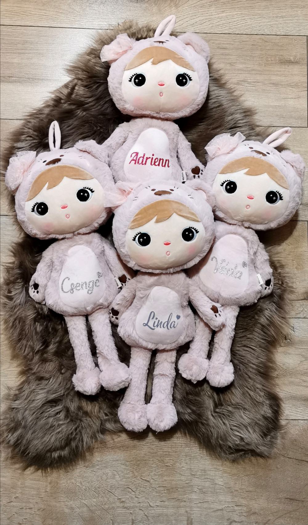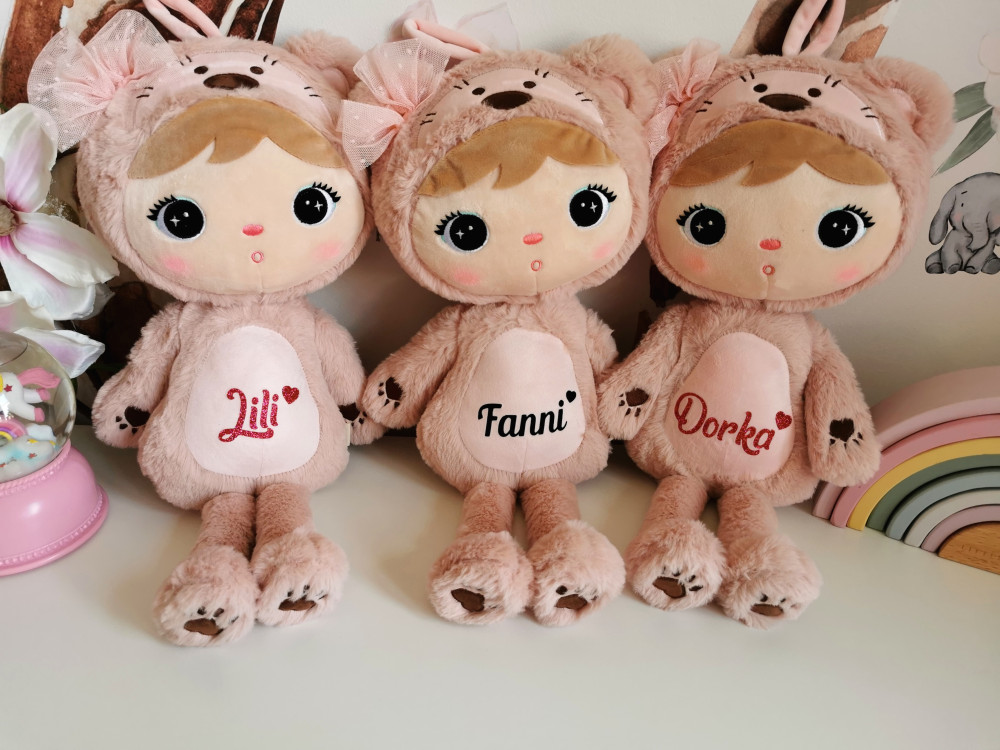 A névre szóló babák között megtalálod a bájos púderrózsaszín maci babát csinos masnival a fején. A kislányok szívébe azonnal belopja magát az aranyos pofijával, de a legjobb része az, hogy a plüssmacit személyre szabhatod a gyermeked nevével! Ez a kis kiegészítés még különlegesebbé teszi, és kiemeli a gyermek személyiségét. Sőt, azt is eldöntheted, hogy milyen színnel legyen hímezve kisgyermeked neve.