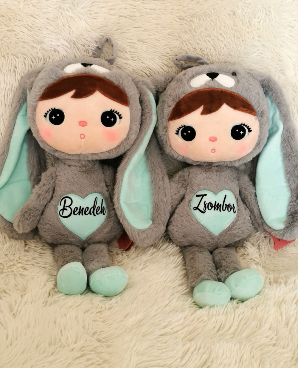 Egyedi, névre szóló babáinkra saját szöveget is kérhetsz, amitől még személyesebb lesz az ajándék.