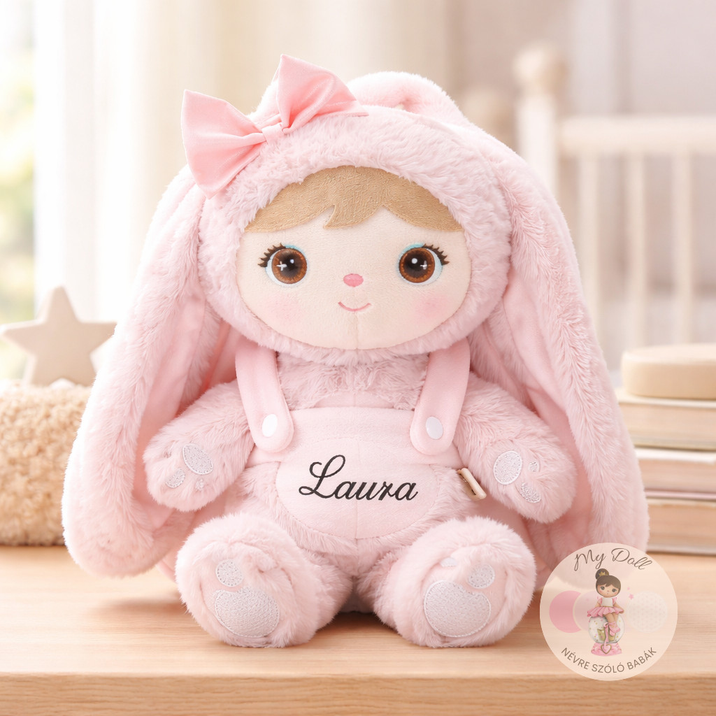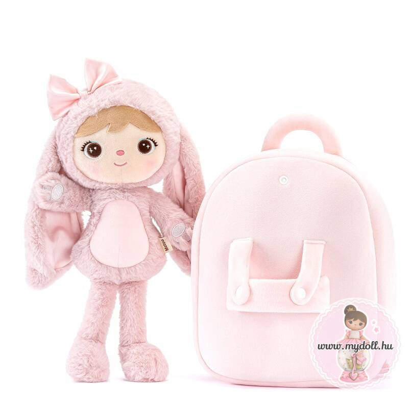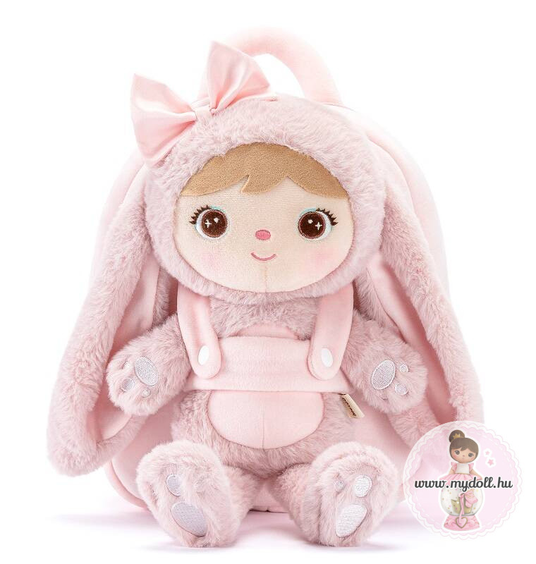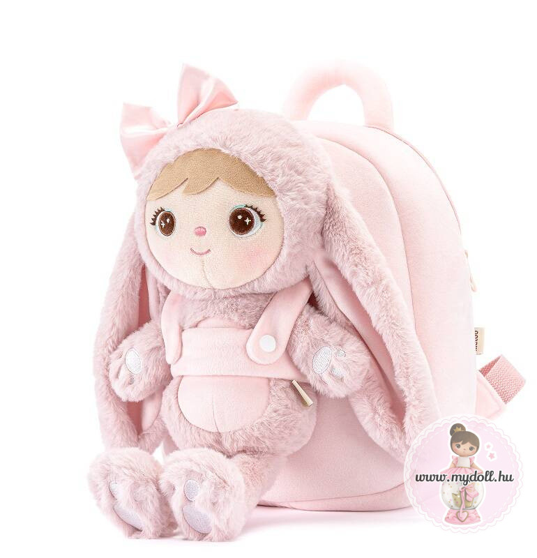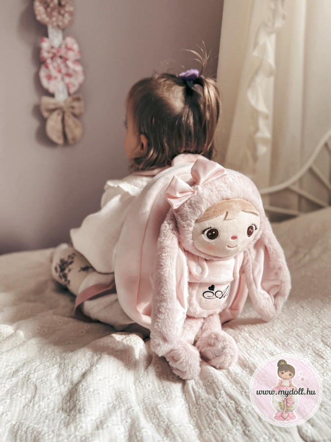 Nyuszi babás hátizsák masnival - levehető babával (púder rózsaszín )